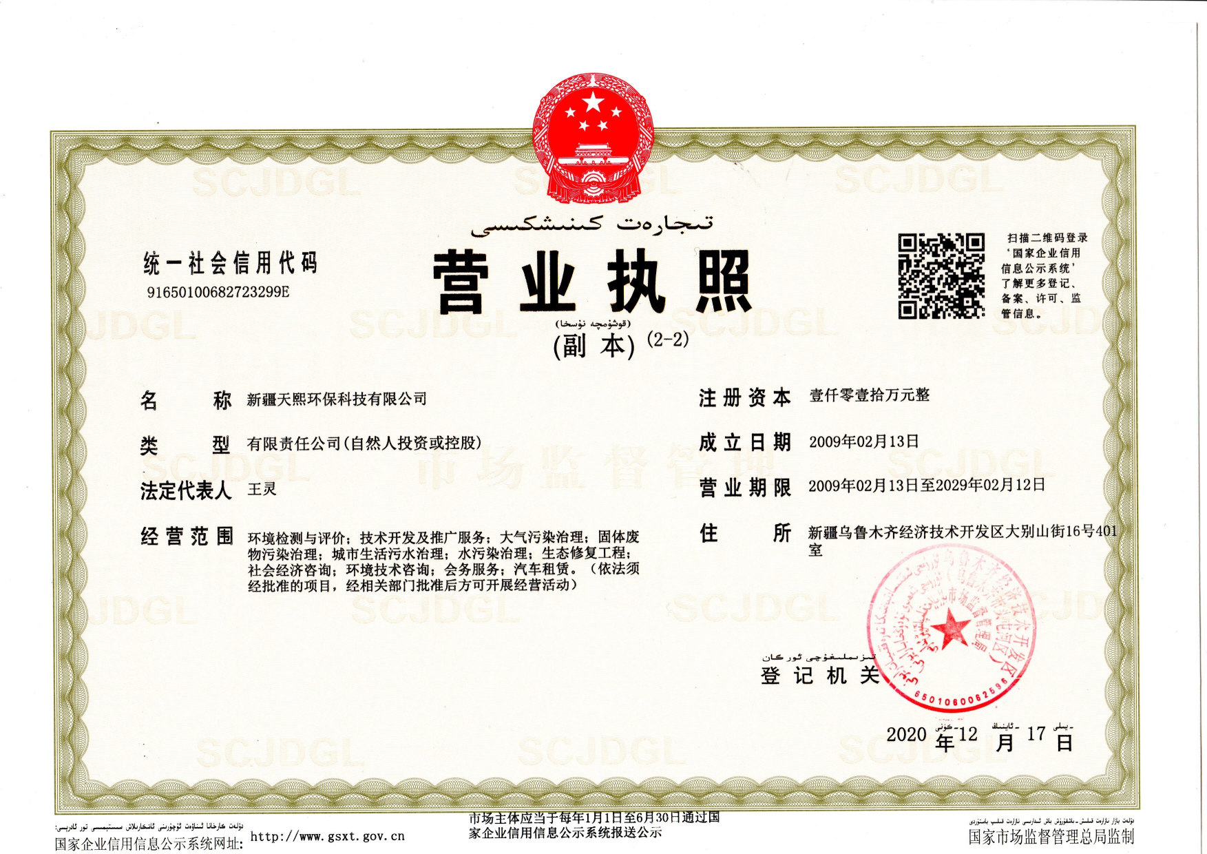 2009 年 2 月,新疆天熙環保科技有限公司應運而生,其注冊資本達 1010 萬元,坐落于烏魯木齊經濟技術開發區大別山街 16 號,乃是一家專注于環境監測、環境技術咨詢以及環保工程的高新技術企業。當下,該公司擁有兩項發明專利、十多項實用新型專利以及兩項計算機軟件著作權。