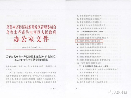 2023年1月榮獲烏魯木齊經濟技術開發區(頭屯河區)優秀科技創新企業: